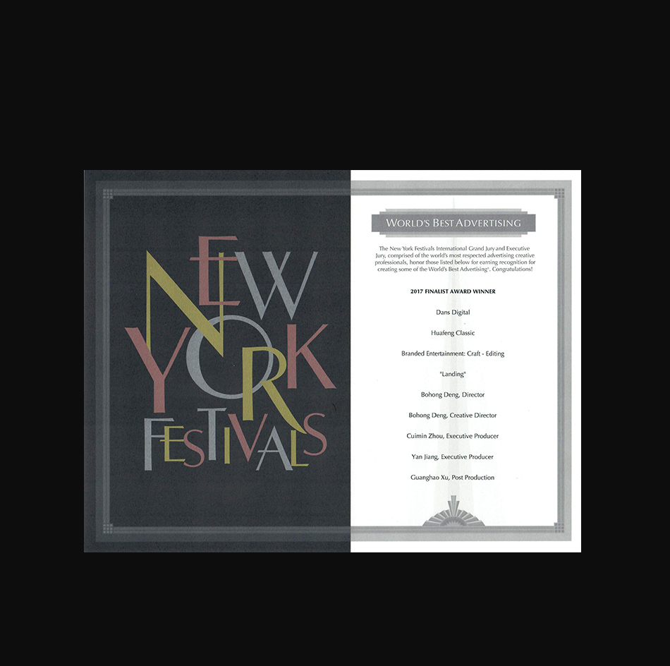 作為“全球最重要的廣告大獎”之一的紐約國際廣告獎(New York Festivals,NYF)創(chuàng)辦于1957年。在全球傳媒廣告界具有非凡的聲譽,紐約國際廣告獎的宗旨是為那些在傳播、廣告、營銷及媒體等領(lǐng)域深深打動并征服了全球觀眾的作品授予殊榮,其評審及評審流程的嚴(yán)格性和權(quán)威性是全球公認(rèn)的試金石,獲獎作品是各個領(lǐng)域的“世界最佳”和行業(yè)的風(fēng)向標(biāo)。