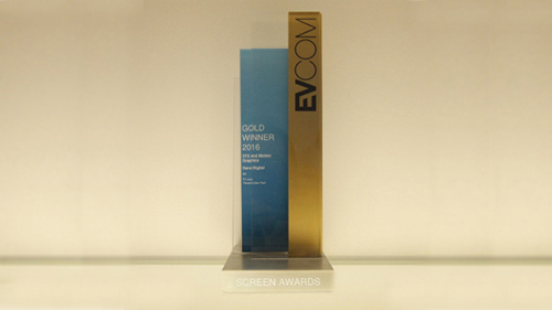 • Gold Award in the Category VFX and Motion Graphics at EVCOM Screen Awards 2016