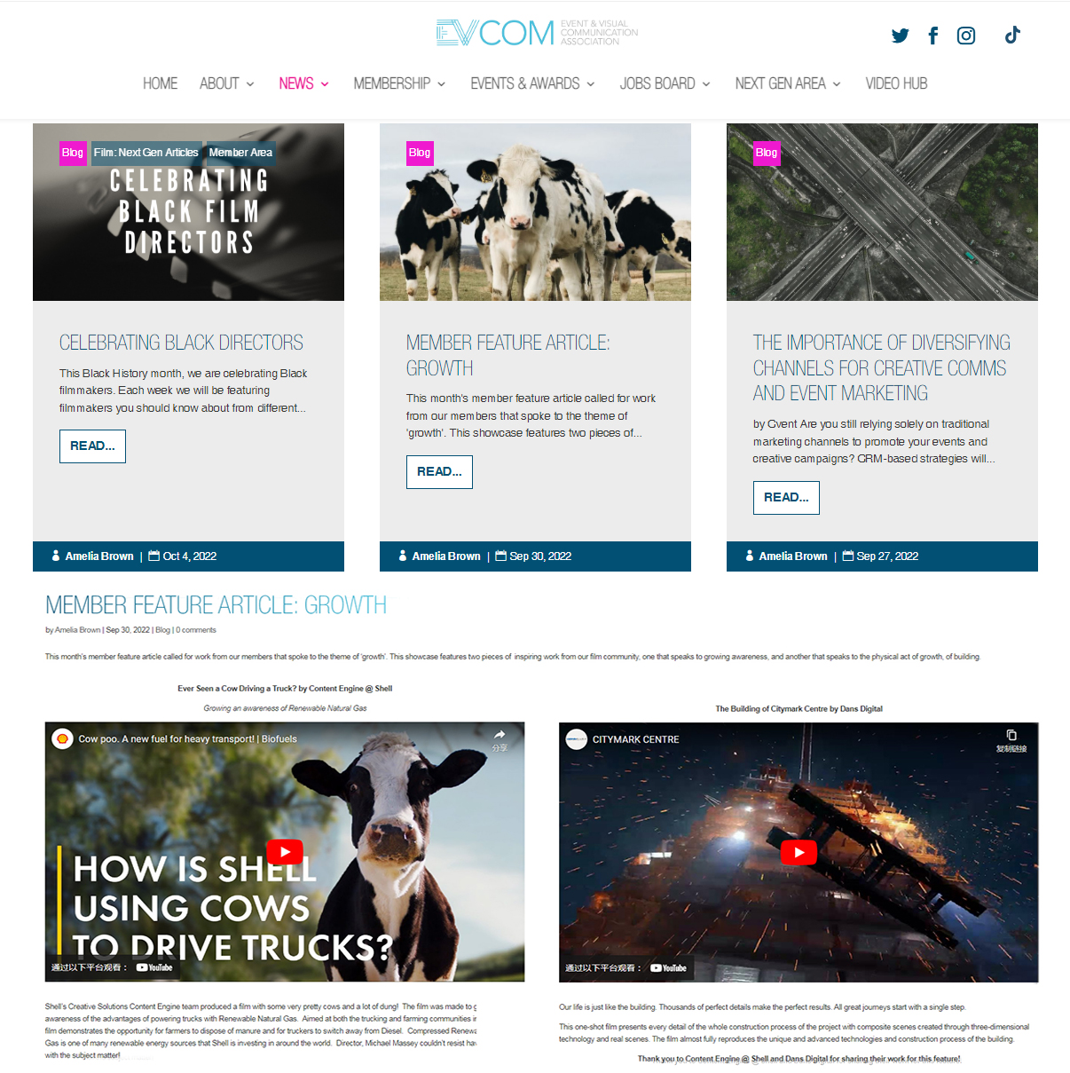 殼牌汽油影視廣告《Ever Seen a Cow Driving a Truck》&點(diǎn)石數(shù)碼影視廣告《城脈中心》入選EVCOM“成長”主題活動