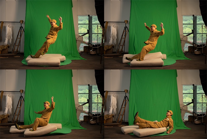 由于《埋頭苦干》影片特殊的制作工藝,加之長時間不間斷的創(chuàng)意修改與技術(shù)測試,演員們需要在長達一年多的制作周期中,不斷調(diào)整動作與表情,以契合影片情緒。以拍攝瀘定橋鏡頭為例,演員們需要趴在搭建的道具上,身體紋絲不動,一趴就是一個多小時。