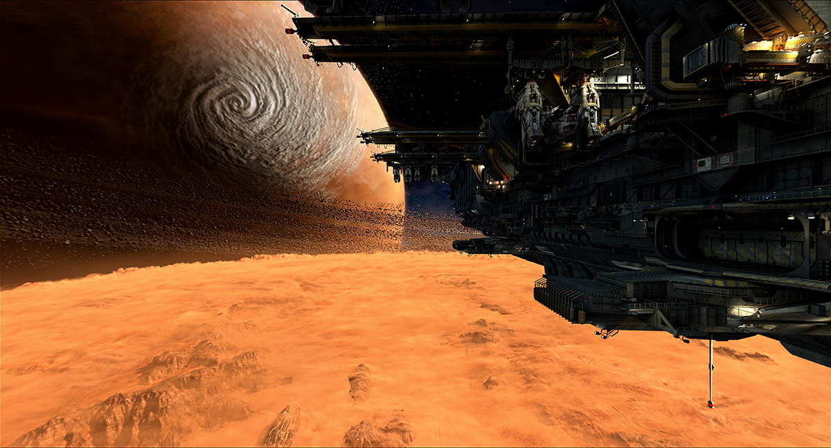 本片是為中國(guó)國(guó)際消費(fèi)電子展示交易中心(簡(jiǎn)稱CEEC)的聲光電電梯項(xiàng)目而做。該電梯的五個(gè)面為特制的投影玻璃,用于播放這個(gè)視頻。視頻模擬了外太空的礦業(yè)星球的場(chǎng)景,隨著電梯的上升,五面屏幕呈現(xiàn)出緩緩上升的太空艙之外的場(chǎng)景,當(dāng)電梯升到頂端,影片中的太空艙也剛好飛至目的地,給人一種身在太空艙的沉浸式體驗(yàn)。